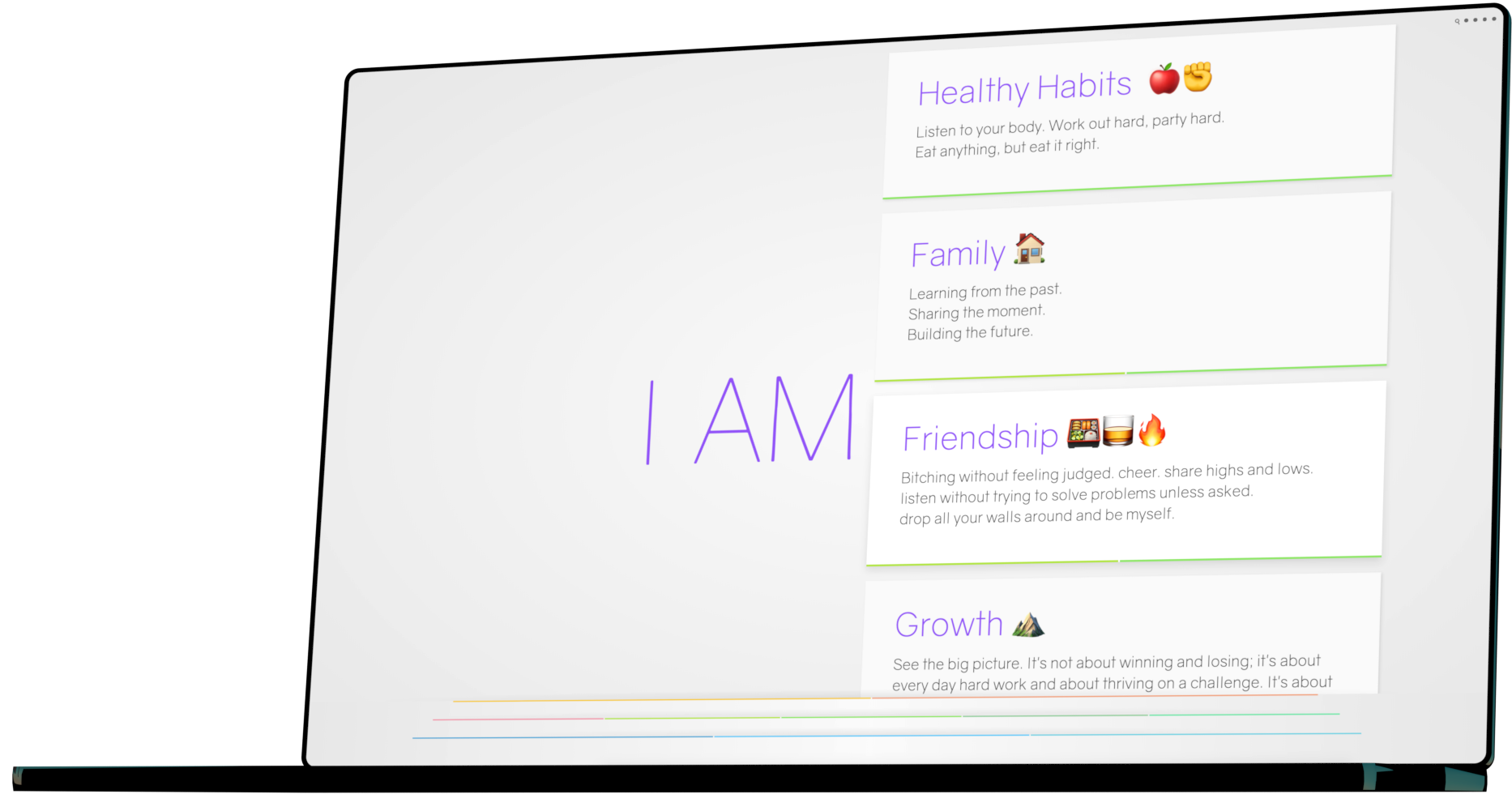 Write down the areas of your life and take responsibility. Relationship, Career, Body, ... Who are you?