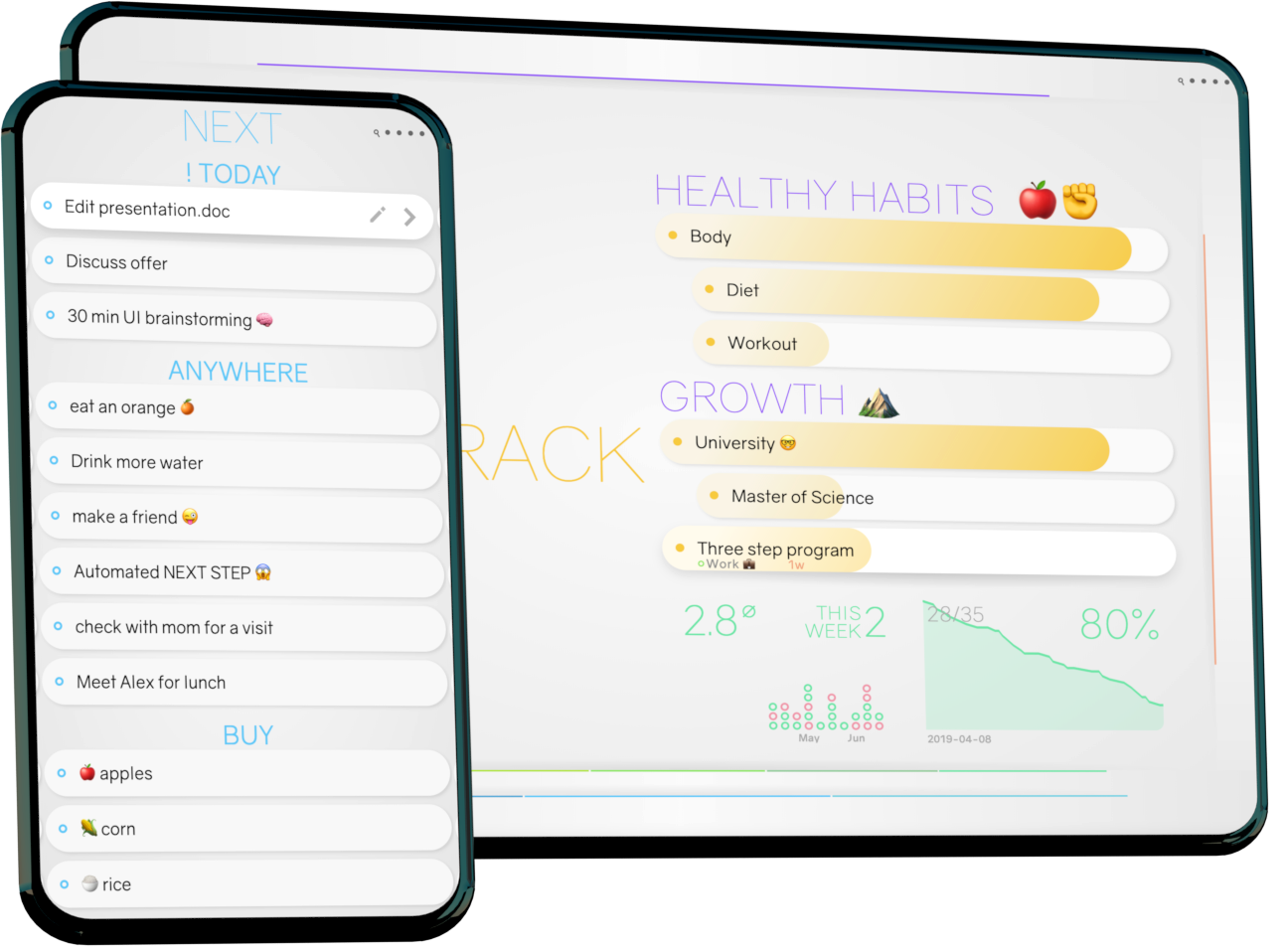Track your goals. Forster healthy habits. Gain insight with activity- and burn down charts